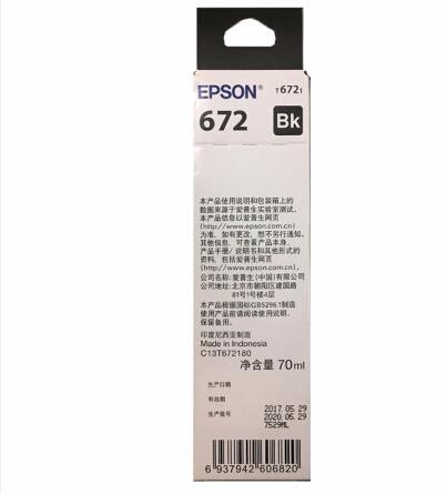 • 商品名称:爱普生T6721黑色墨水瓶(适用L220/L310/L313/L211/L360/L380/L455/L385/L485/L565)
