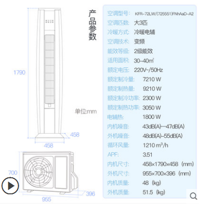 • 商品名称:Gree/格力 KFR-72LW/(725551)FNhAaD-A2 3匹冷暖变频客厅空调立式