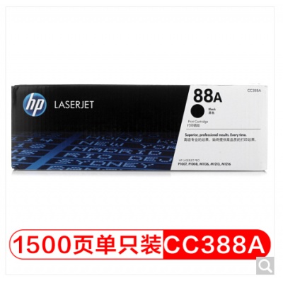 • 商品名称:惠普(HP)CC388A黑色硒鼓 88A(适用 1108 1106 M1213 1216 1136 M202, M226系列M126 M128系列等)