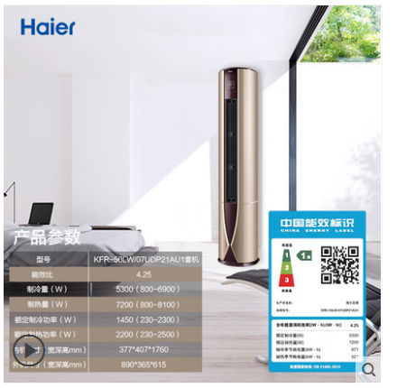 • 商品名称:Haier/海尔 KFR-50LW/07UDP21AU1 2匹一级能效立式家用空调