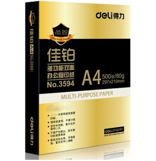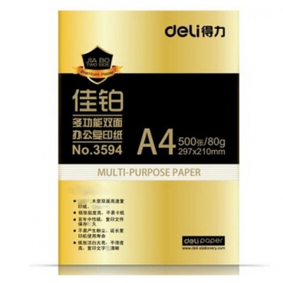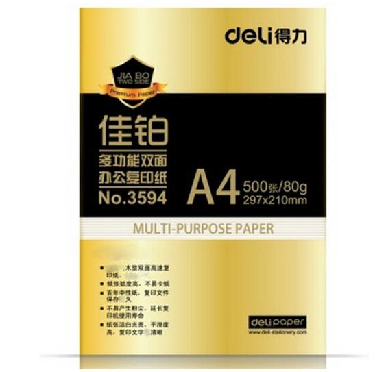 • 商品名称:得力(deli) 3594A4 佳铂复印纸 80g 500张/包 单包装