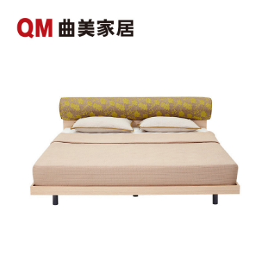 • 商品名称:QM曲美家居 布艺双人床可拆洗 海绵软包板木床头钢网床架简约现代北欧风卧室家具 橡木色 1.8*2.0