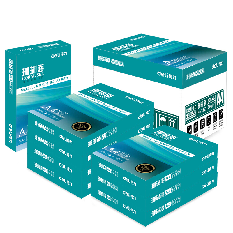 • 商品名称:得力(deli) 7351 A4 珊瑚海复印纸 80g 500张/包 8包/箱