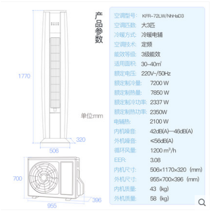• 商品名称:Gree/格力 KFR-72LW/NhHaD3 3匹定频冷暖客厅立式空调清炫风柜机