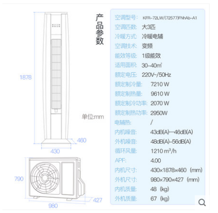 • 商品名称:Gree/格力 KFR-72LW/(72577)FNhAb-A1一级能效智能变频冷暖空调