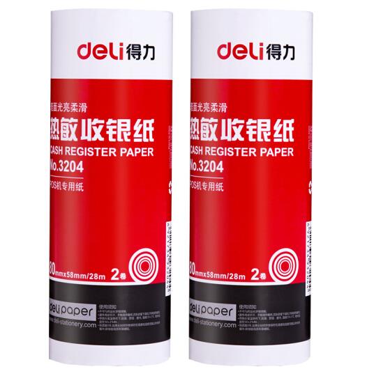 得力(deli)80mm*58mm热敏收银纸/收银机打印纸/超市小票打印纸 28米/卷 2卷装 3204