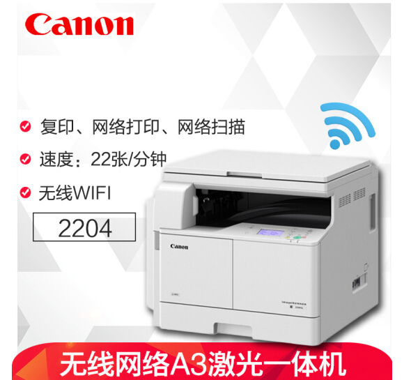 • 商品名称:佳能(Canon)IR2204N/AD无线wifi复合机a3激光黑白打印机复印机扫描多功能一体机 主机标配
